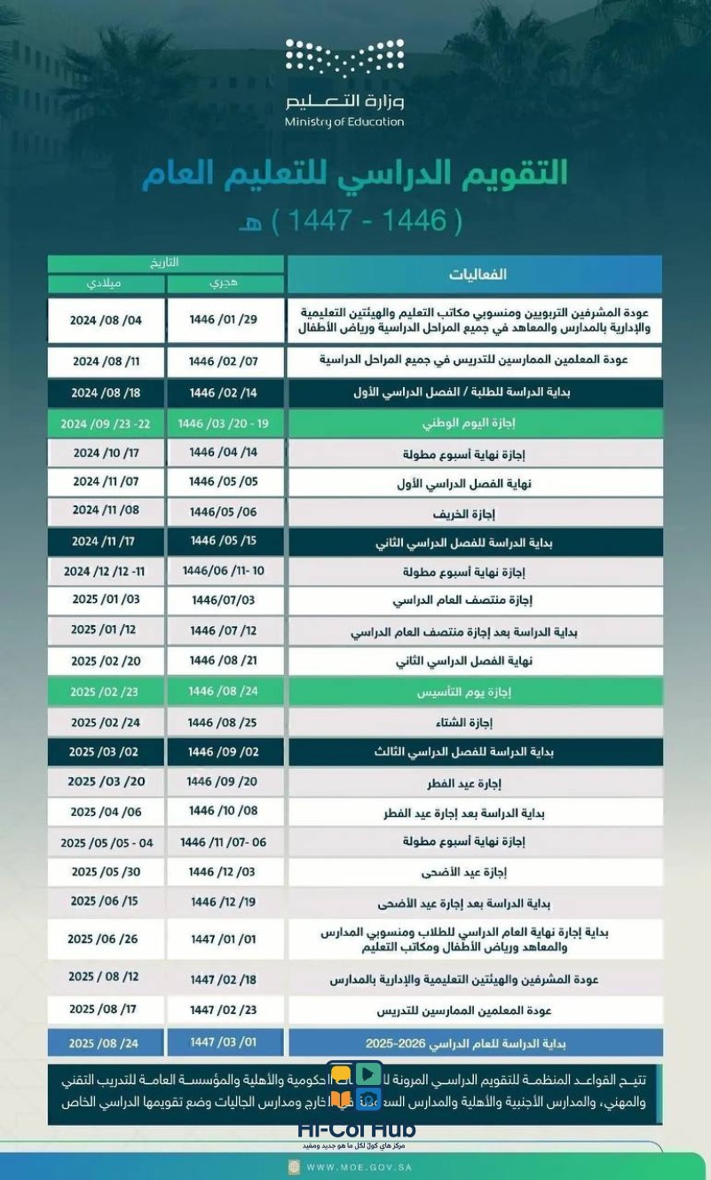 بهذا الشكل، يمثل التقويم الدراسي 1447 خارطة طريق شاملة تساعد جميع أطراف العملية التعليمية في المملكة العربية السعودية على تنظيم عام دراسي مثمر ومليء بالإنجازات. من خلال فهم المواعيد الرئيسية والإرشادات الهامة، يمكن للطلاب وأولياء الأمور والمعلمين الاستعداد الأمثل لعام دراسي ناجح ومثمر.