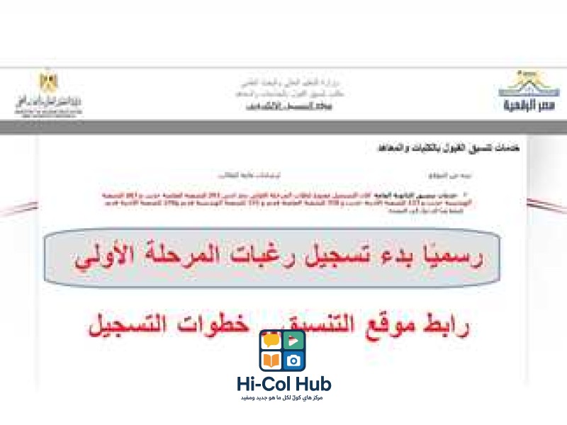 بدء التسجيل في تنسيق المرحلة الأولي للعام الدراسي 2025