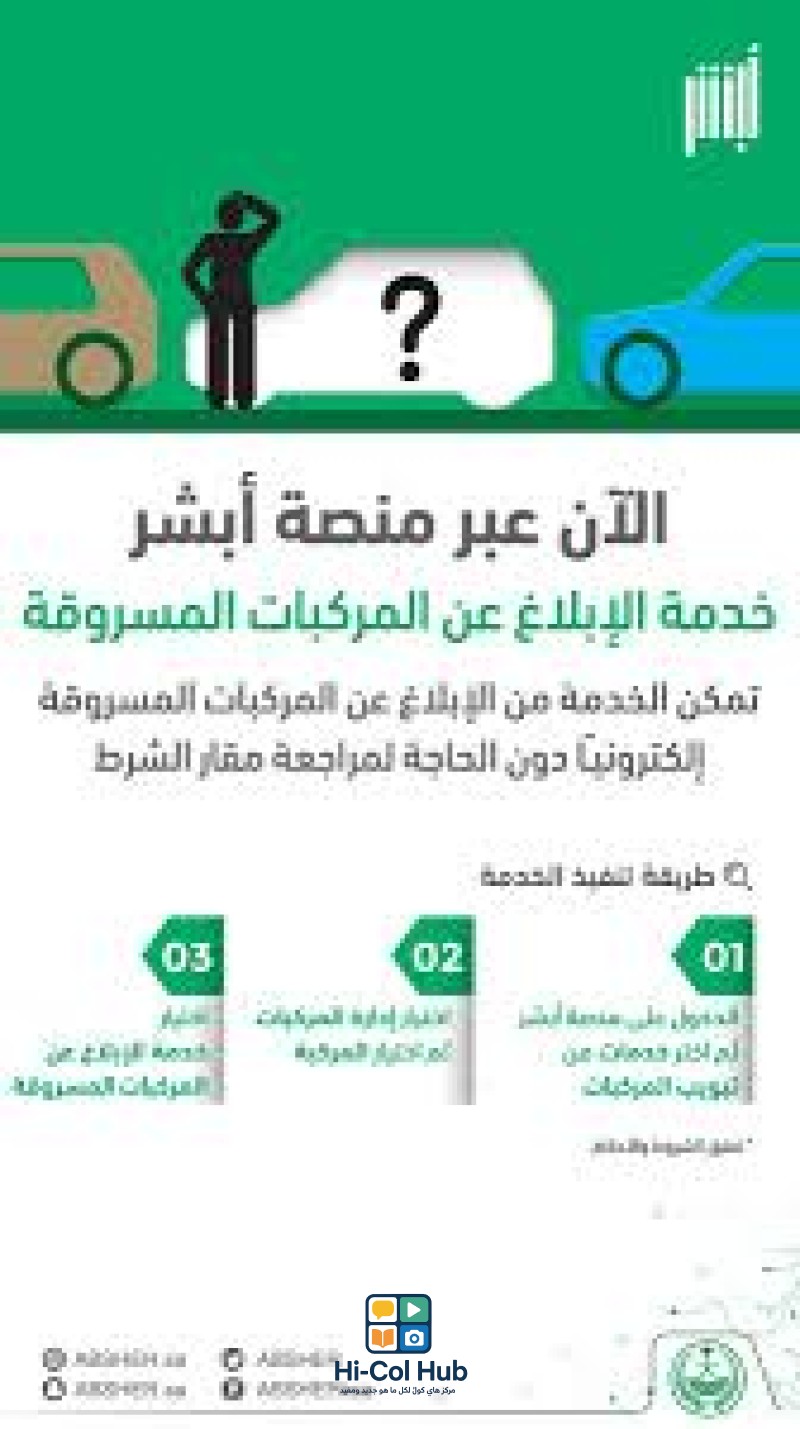 يمكن لأي مواطن أو مقيم في السعودية تقديم بلاغ عن سرقة مركبة بسهولة عبر المنصة الإلكترونية لوزارة الداخلية (أبشر)، وذلك لتسهيل متابعة البلاغ وتحريك الإجراءات القانونية بسرعة.