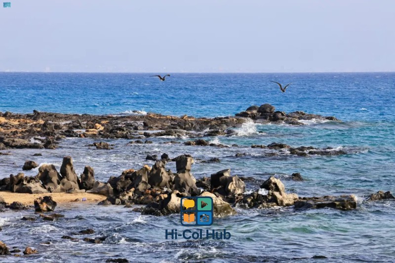 يكمن سحر شاطئ الحرة الشمالية وجاذبيته الخاصة في التكوين الجيولوجي الفريد الذي يميزه عن غيره من الشواطئ فعلى امتداد الساحل تتلألأ الرمال البيضاء الناعمة التي تدعوك للتجول والاسترخاء ولكن ما يلبث هذا البياض الناصع أن يلتقي بامتدادات واسعة من الصخور البركانية ذات اللون الأسود الداكن والتي تعرف محليا باسم "الحرات" هذا التلاقي المدهش بين الأبيض والأسود يخلق تباينا لونيا حادا ومبهرا يرسم لوحة طبيعية ذات طابع خاص جدا لا تجدها في الكثير من الأماكن هذه الصخور البركانية ليست مجرد عنصر جمالي بل هي شاهد على التاريخ الجيولوجي للمنطقة وتضفي على المكان إحساسا بالقوة والأصالة يمتزج هذا التكوين الصخري الرملي الفريد مع مياه البحر الأحمر المتدرجة الألوان ليقدم للزائر تجربة بصرية غنية ومتكاملة