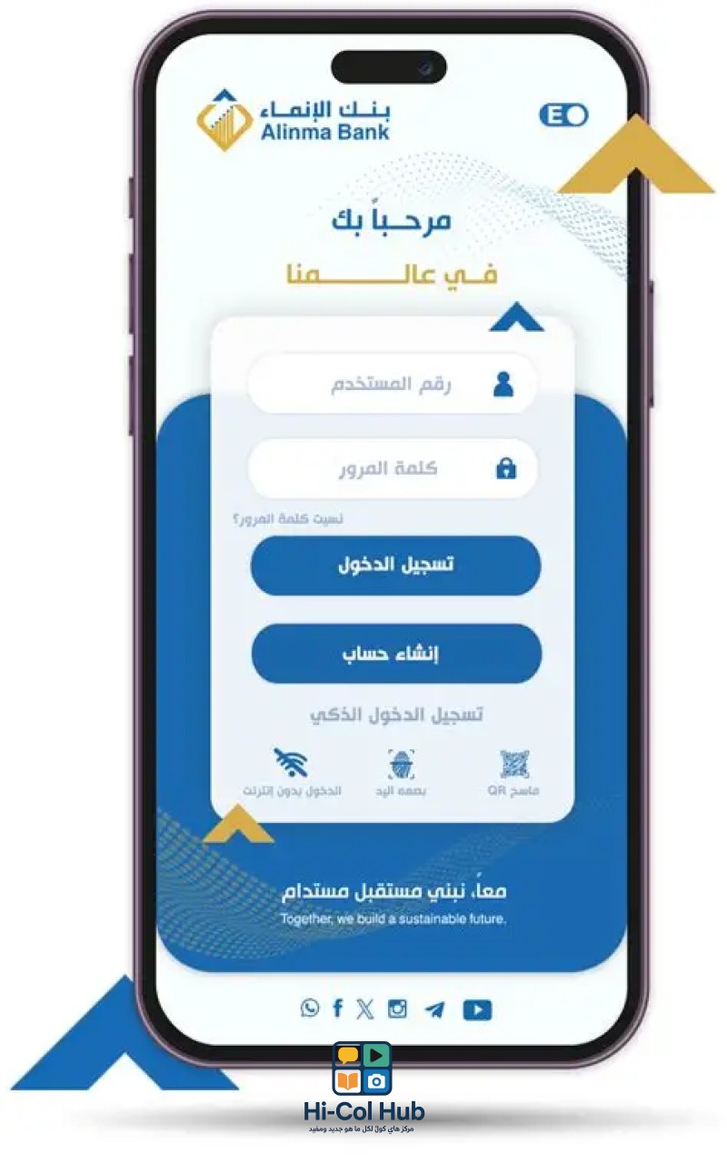 - قم بتحميل تطبيق الإنماء من App Store أو Google Play.