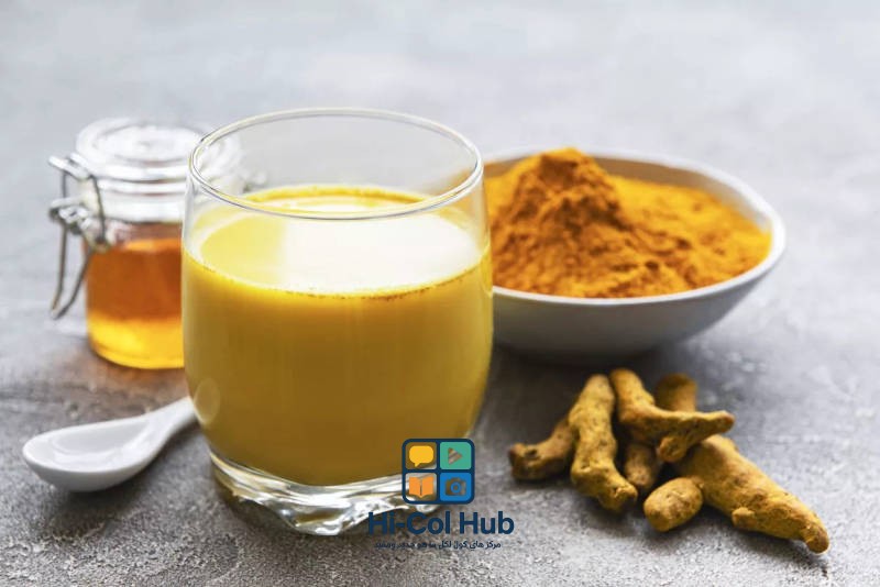 قلب المزيج جيدًا حتى يمتزج الكركم مع الحليب.
