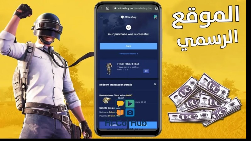 عبر المواقع الرسمية المعتمدة (مثل Midasbuy) تأكد من أن الموقع معتمد رسميا في منطقتك (ابحث عن الرابط من مصادر ببجي الرسمية) أدخل معرف اللاعب (ID) اختر الباقة وطريقة الدفع وأكمل العملية