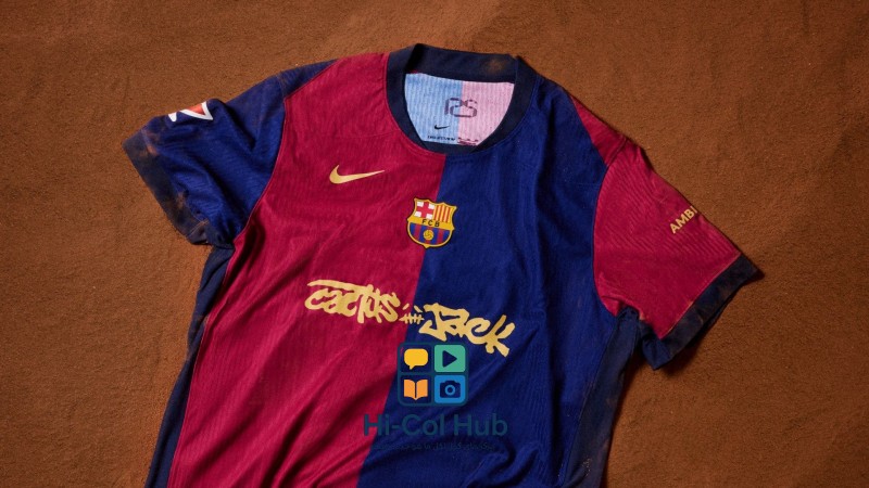 ويأتي هذا القميص بتصميم فريد من نوعه، حيث يحمل شعار "كاكتوس جاك" – العلامة التجارية الشهيرة التي تعود لمغني الراب الأمريكي ترافيس سكوت، في تعاون جديد بين النادي الكتالوني والنجم العالمي.