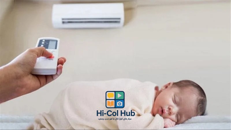 تجنب توجيه الهواء مباشرة نحو الطفل: من الضروري عدم جعل تيار الهواء من التكييف أو المروحة يصطدم بجسم الطفل، خاصة خلال ساعات النوم، لأن ذلك قد يؤدي إلى التهابات صدرية أو نزلات برد.