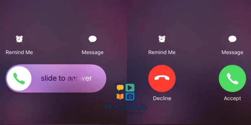 عندما يكون الايفون مفتوحا اما اذا كنت تستخدم هاتفك بالفعل وشاشته مفتوحة وتفاعلية وتلقيت مكالمة فحينها سيظهر لك الخياران الواضحان قبول و رفض لان الهاتف يفترض انك تنظر الى الشاشة ويمكنك اتخاذ القرار بوعي.